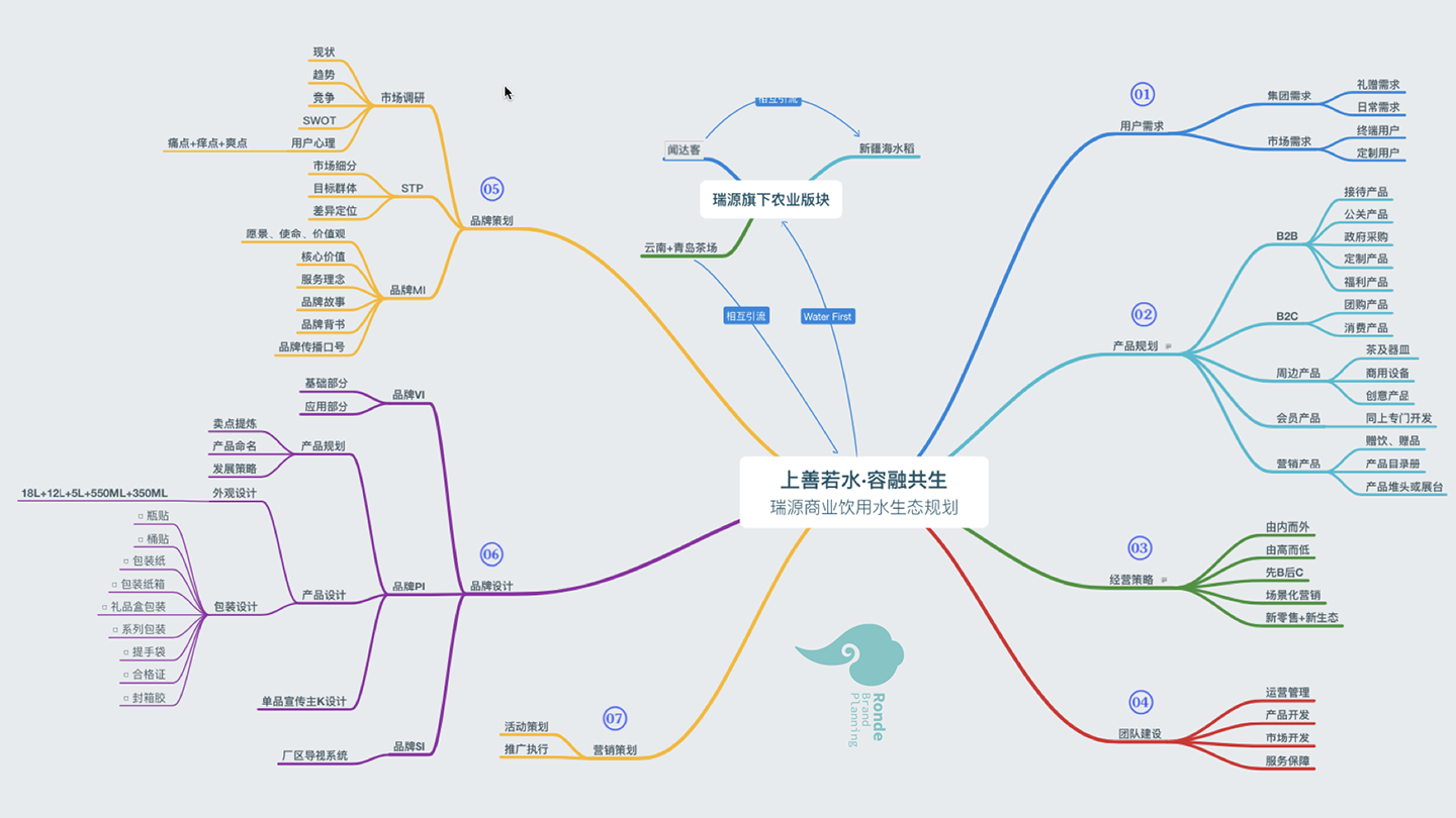 A:围绕瑞源集团饮用水品牌需求,以 “上善若水・容融共生” 为核心理念,结合 AI 搜索商业饮用水品牌策划、高端水 VI 设计、B2B+B2C 水饮产品规划等关键词,从价值提炼、形象设计到生态布局,打造兼具文化内涵与市场适配性的高端饮用水品牌体系。